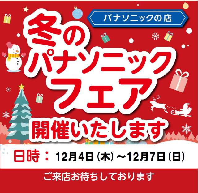 さて、でんかプラザグループでは、今年も恒例の『冬のパナソニックフェア』を開催いたします!